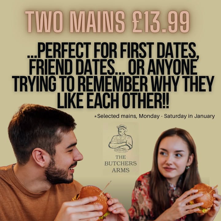 ✨ Two mains for just £13.99 tonight✨Perfect for first dates, friend dates or anyone trying to remember why they like each other!!
