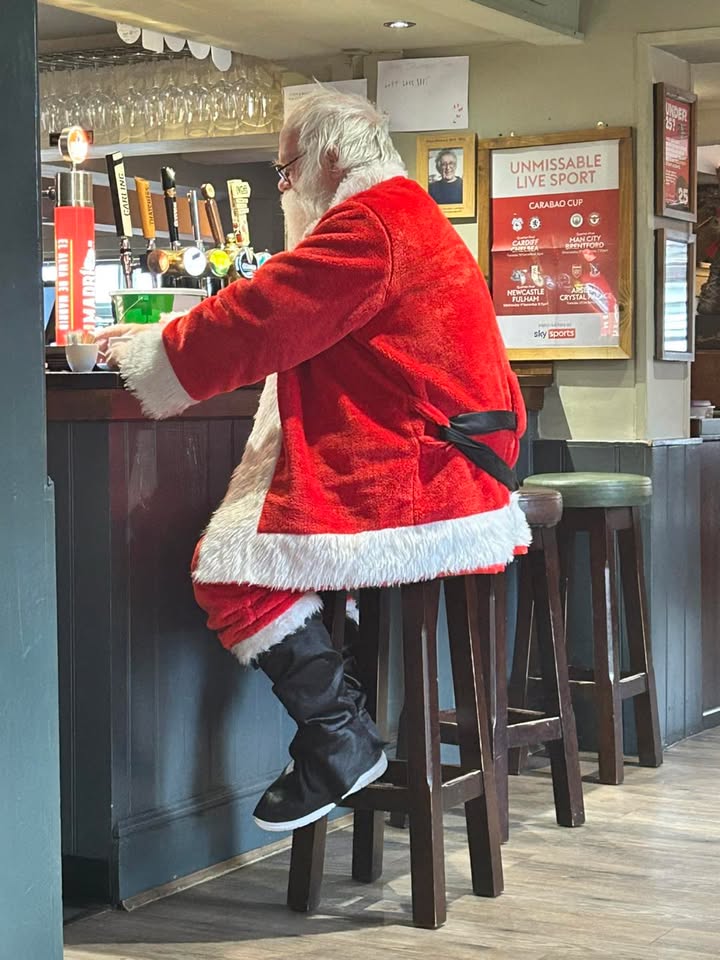 Spotted having a cuppa after a hard morning’s breakfast with Santa shift. Powering up before whizzing off again in his sleigh 🛷