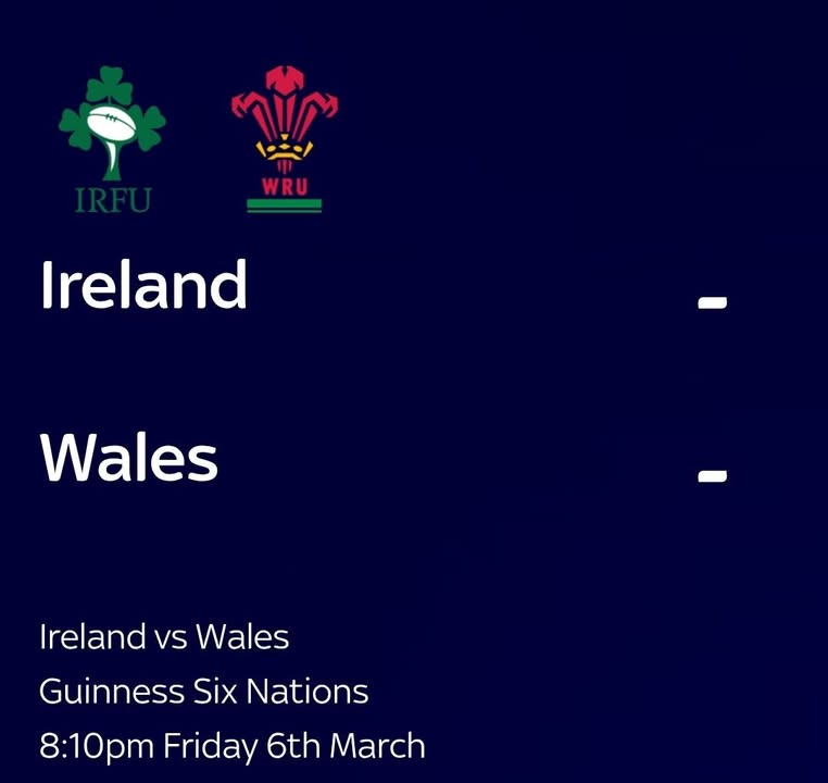 What a game of rugby we have tonight.... IRELAND host WALES. From 8.10pm.(random kick off time, we know!!)