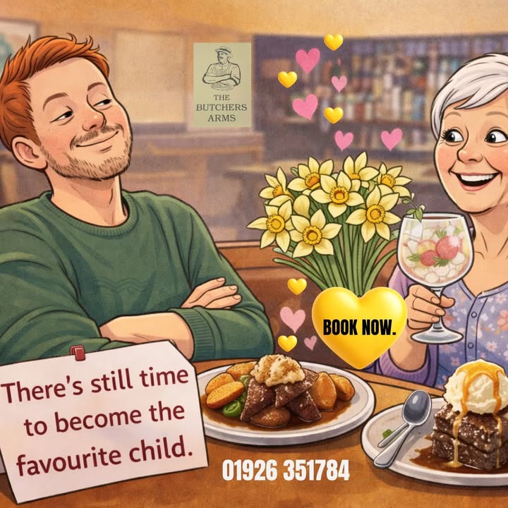 Be quick, secure our last few tables for Mother's Day (15th March)! Treat Mum properly: We’ve got the food, the flowers & the fuss all sorted! Every mum dining gets flowers, so you can focus on the important bit… being the favourite child!! Three courses for just £23.99, starring our famous homemade roast dinner. Add in a lovely gin and finish strong with Cartmel’s, award-winning, handmade sticky toffee pudding & you’re officially the best!! Call now to book to secure your table... before they’re gone. 01926 351784. #MothersDayRoast #BishopsItchingtonPub #AwardWinningDining